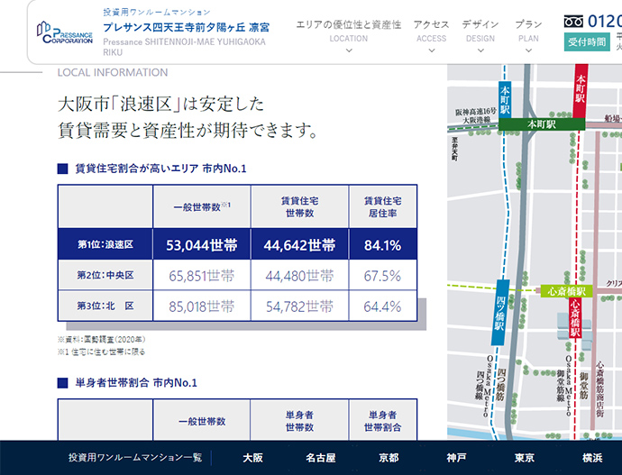 今回、WEB制作者がその問題点を把握しており、ぱっと見たときに投資用マンションの紹介であることがわかるよう工夫されているサイトを発見した。